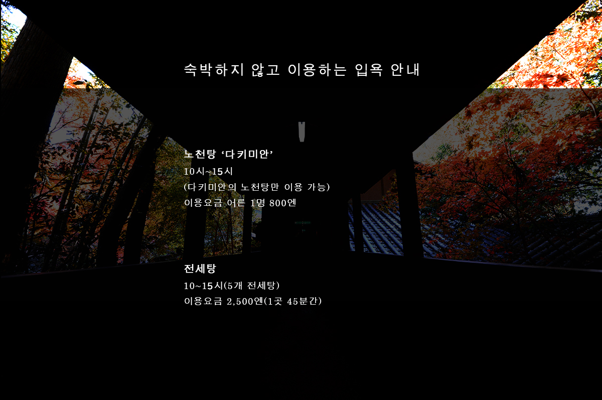 *숙박하지 않는 외부 이용객의 입욕은 10시〜15시입니다.