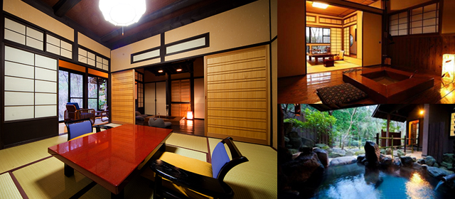 노천탕이 딸린 일본식 객실 B타입일본식 객실 8 다다미 /일본식 전통 화로 장치가 설치된 이로리 방/반 노천탕 /넓은 툇마루(소파 있음)