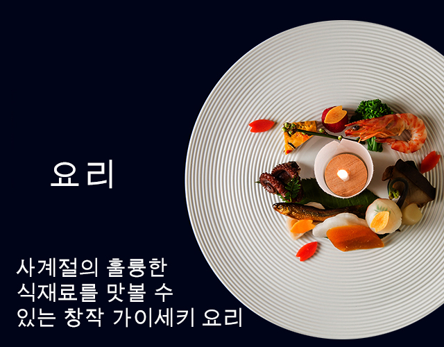 한 등급 위의 뛰어난 식재료로 만든 특별한 가이세키 요리를 객실에서 드실 수 있습니다.
