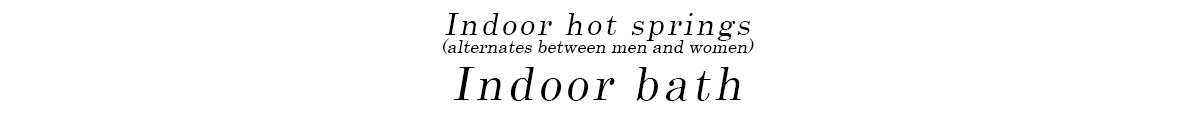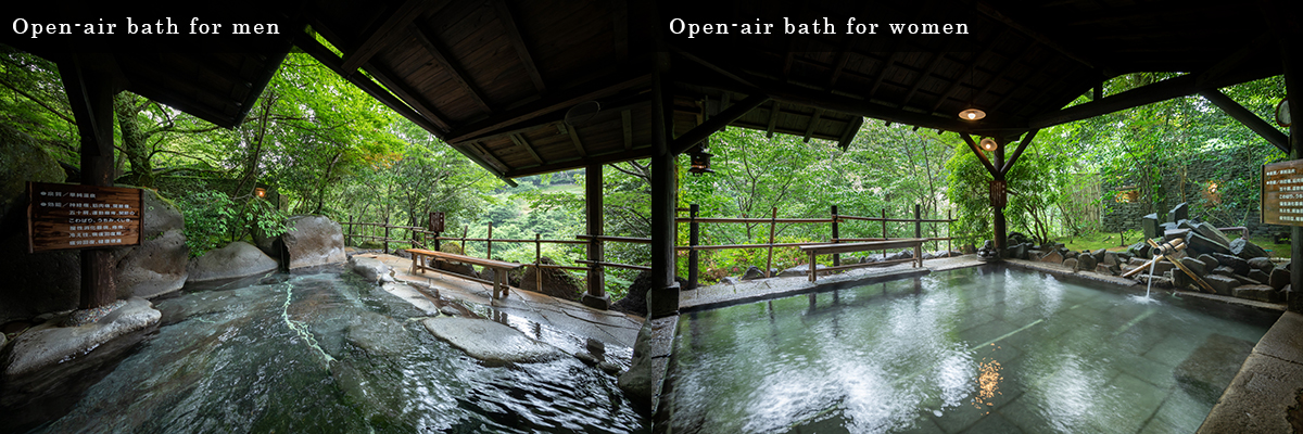 There are open-air baths (men and women) exclusively for inn guests along the Goraku River, down the stone steps from the corridor on the 1st floor. Since the bath continues from the indoors to outdoors, you can come and go between the baths.