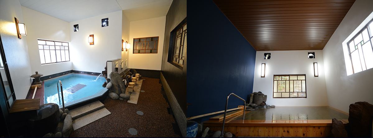 료칸 내에 아침에 남녀가 교대로 이용할 수 있는 남녀별 실내 욕탕이 완비되어 있습니다.