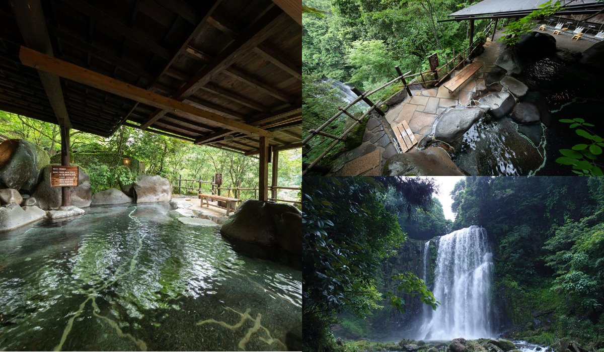 긴 계단을 올라가면 사쿠라다키 폭포가 내려다보이는 높은 곳에 ‘다키미안’이 있으며, 경치가 뛰어난 노천탕이 남녀별로 각각 있습니다.